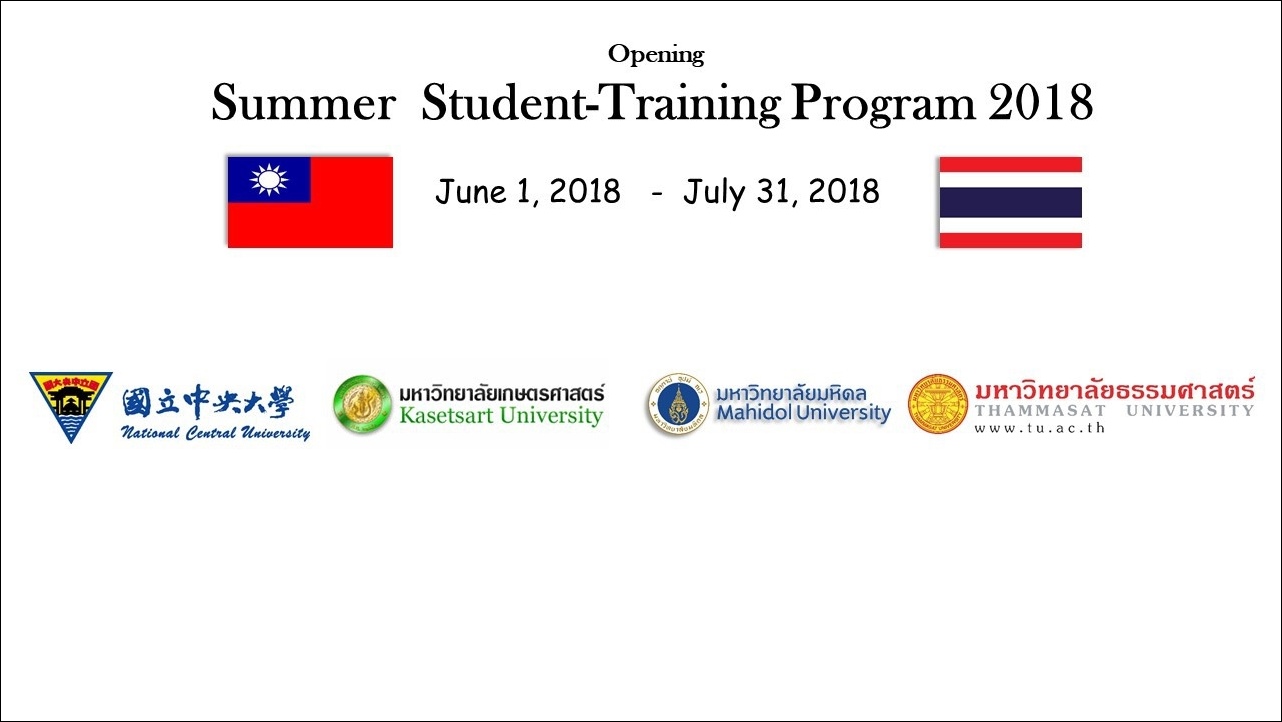 - This program is a starting point of the Ph.D exchange student program that there are four Thai Ph.D student from Kasetsart University came to NCU for short term research.